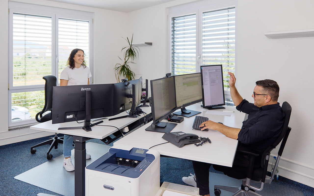 Vertrauensarbeitszeit. Unsere Büros werden um 6 Uhr aufgeschlossen und um 22 Uhr wieder zugeschlossen. Dazwischen planst du flexibel Deinen Arbeitstag.